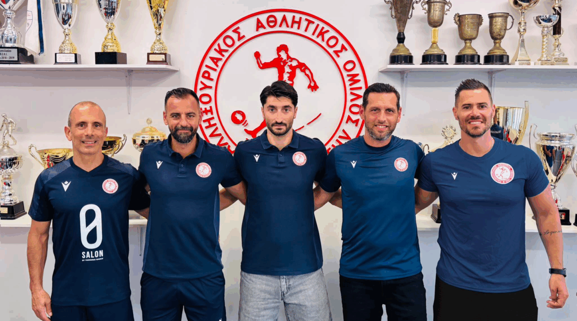 Βοηθοί του στο προπονητικό team θα είναι ο Ζάβαλης Γιάννης (συνεργάτης του στην προηγούμενη τετραετία) και ο Λουλούδας Γιώργος, ο οποίος παραμένει – άπαντες διπλωματούχοι Uefa C.